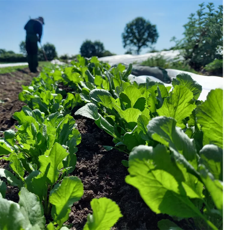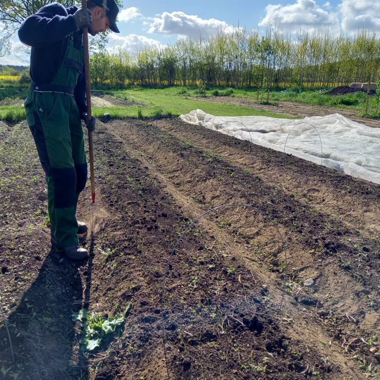 In den Beeten angekommen, stehen unsere Pflanzen mehrere Wochen bis zu einige Monate bis wir ernten können. Währenddessen setzten wir auf eine schonende Bodenbearbeitung mit der Hand.