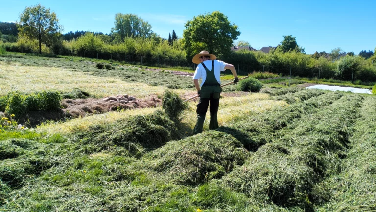 Wir verteilen Kompost und Mulch wo möglich und säen Winterbegrünungen ein. So hat sich die Bodenstruktur deutlich verbessert und der Humusgehalt steigt.
