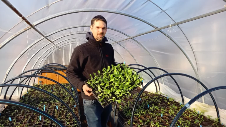 Wir ziehen alle unsere Jungpflanzen aus samenfesten Bio-Saatgut selbst vor. Dabei durchlaufen sie von der Aussaat bis zur Pflanzung einen langen Weg. Die ersten Aussaaten keimen bereits im Haus, später reicht der Keimschrank im Anzuchttunnel. Im Tunnel ist es frostfrei und hier können sie wachsen, bis sie bereit sind zur Pflanzung im Beet.