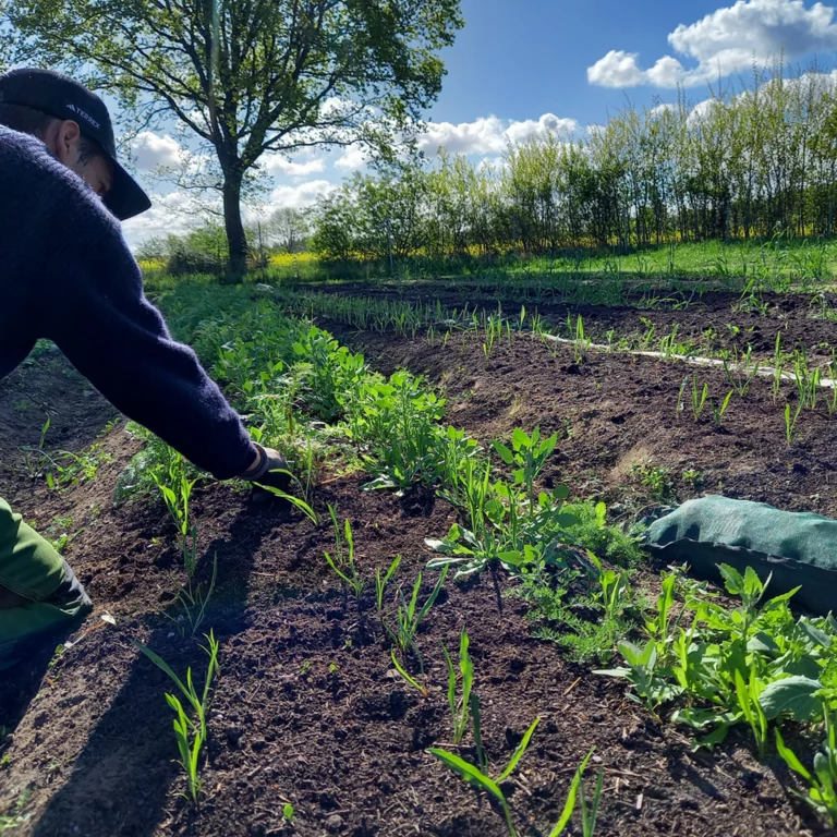So werden bei der Pflege die Beete nicht verdichtet und das wichtige Microbiom im Boden wird kaum gestört. Zur Unterstützung setzten wir Komposttee-Spritzungen oder auch Pflanzenjauchen ein, dies stärkt die Pflanzen und macht sie resistenter gegen Schädlinge.